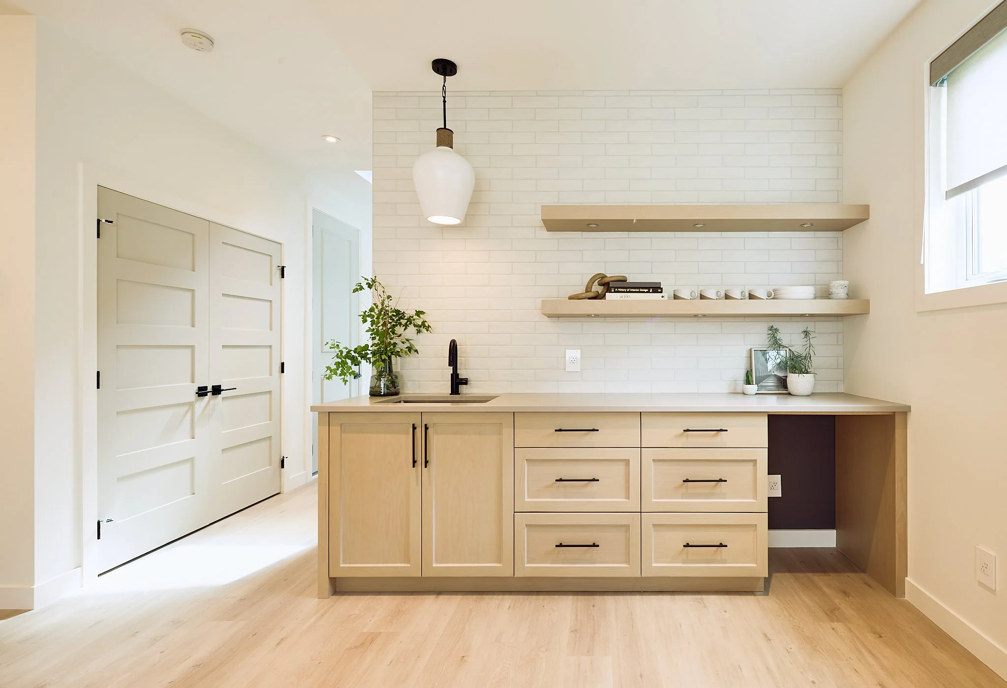 At the heart of this home is cabinetry designed to be as functional as it is beautiful. Every detail — from the clean lines of light wood to the bold contrast of dark accents — reflects the quality and care that goes into custom work.