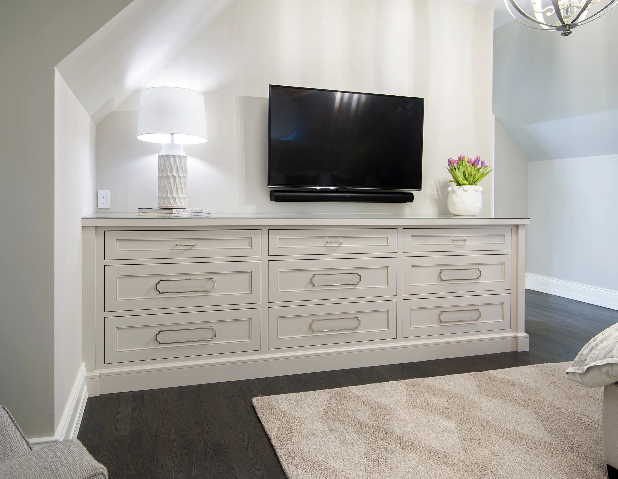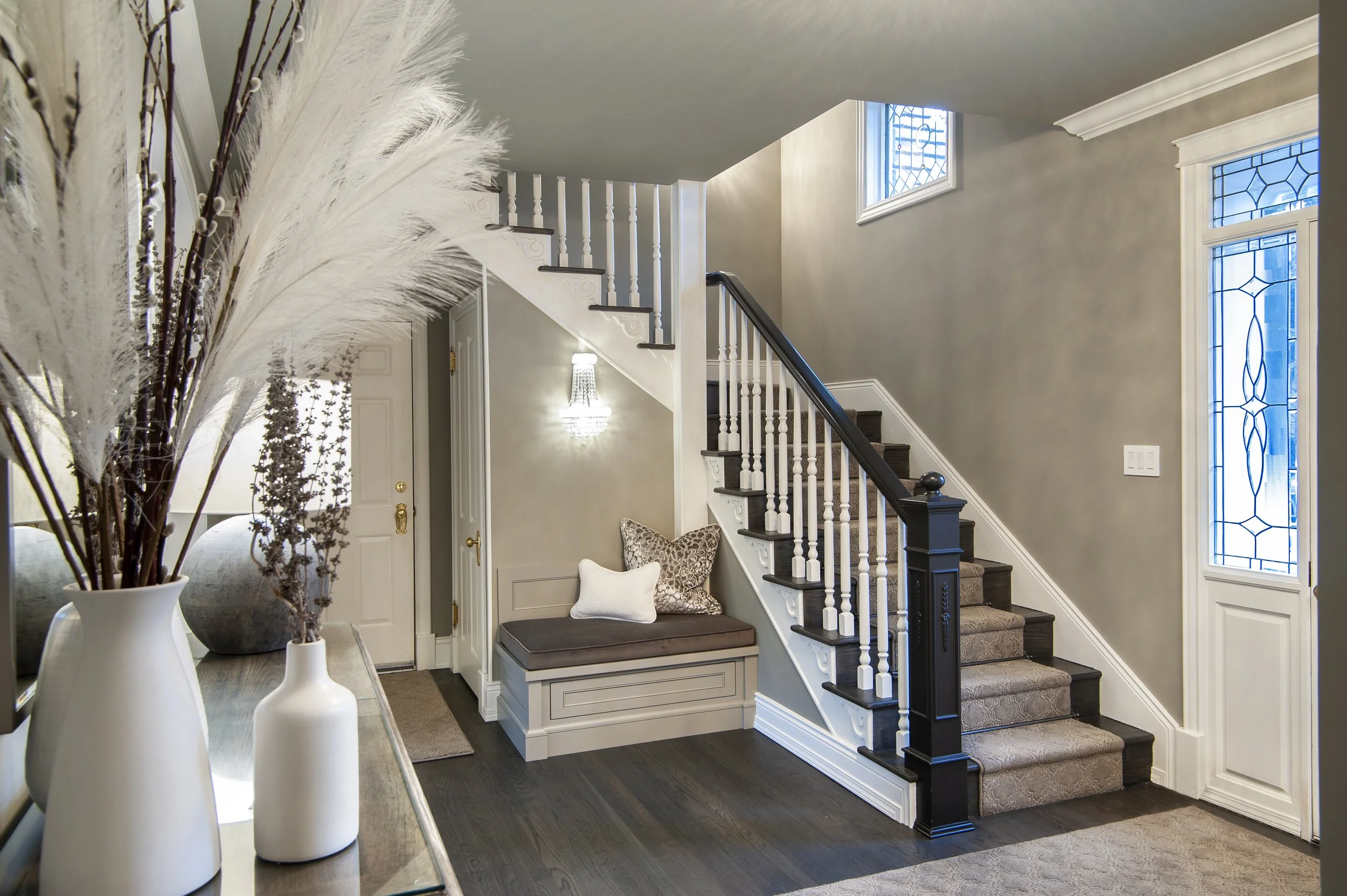 Soft neutrals and timeless detailing define this elegant home, where every space reflects balance, warmth, and craftsmanship. In the kitchen, painted cabinetry with inset panels and brushed hardware creates a refined backdrop for everyday living, while a custom island anchors the space with understated grace.